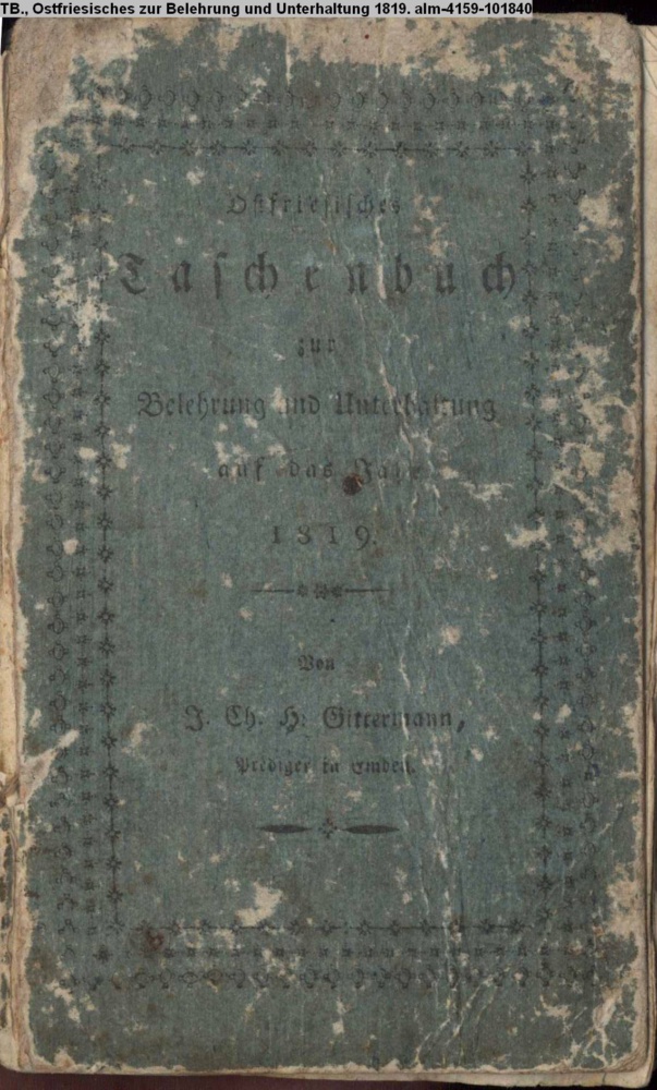 Ostfriesisches / Taschenbuch / zur / Belehrung und Unterhaltung / auf das Jahr / 1819. / Von / J. Ch. H. Gittermann, / Prediger in Emden. / Norden, / bei Johann Friedrich Schmidt