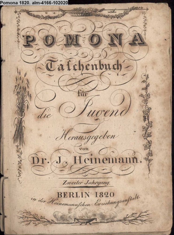 POMONA / Taschenbuch / für / die Jugend / Herausgegeben / von / Dr. J. Heinemann. / Zweiter Jahrgang. / BERLIN 1820 / in der Heinemannschen Erziehungsanstalt