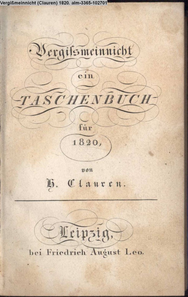 Vergissmeinnicht / ein / TASCHENBUCH / für / 1820, / von / H. Clauren. / Leipzig, / bei Friedrich August Leo