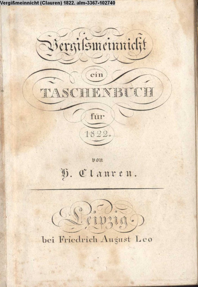 Vergissmeinnicht / ein / TASCHENBUCH / für / 1822. / von / H. Clauren. / Leipzig / bei Friedrich August Leo
