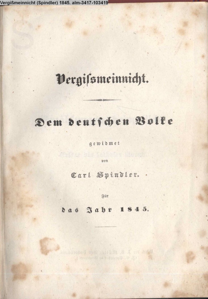 Vergißmeinnicht. / Dem deutschen Volke / gewidmet / von / C. Spindler. / Für das Jahr 1845