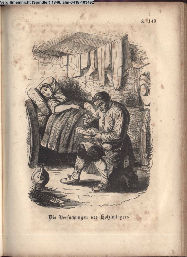 Illustration zu »Erzählungen beim Licht. Eilfter Abend. Von den Versuchungen des Holzschlägers« von C. Spindler INr 103490, Obj 34
