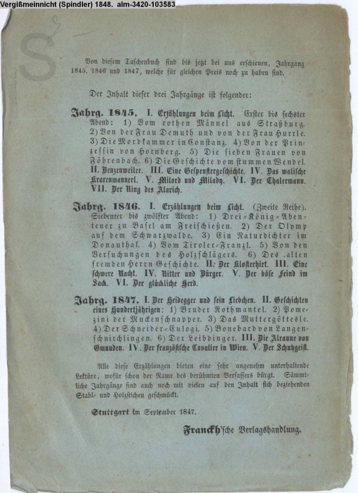 Vergißmeinnicht (Spindler) TB der Liebe, der Freundschaft und dem Familienleben des deutschen Volkes gewidmet 1848, Nr. 103583