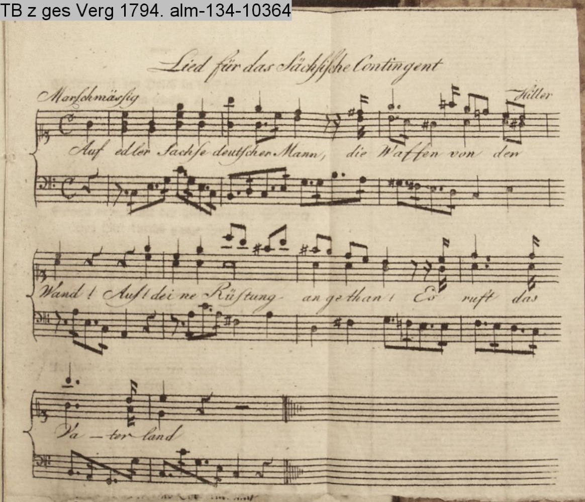 Vertonung des Gedichts »Lied an das sächsische Contingent« von Weiße