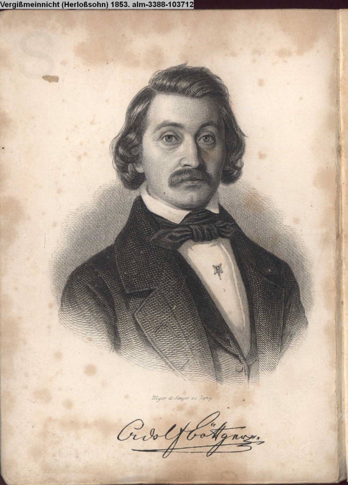 Vergißmeinnicht. / Taschenbuch für 1853. / Siebenter Jahrgang. / Herausgegeben / von / Jeanne Marie. / Mit Beiträgen von Adolf Böttger, Bernd v. Guseck, Ludewike / Wallenheim, Adolf Görling und der Herausgeberin etc / Mit vier Stahlstichen. / Leipzig, / Theodor Thomas