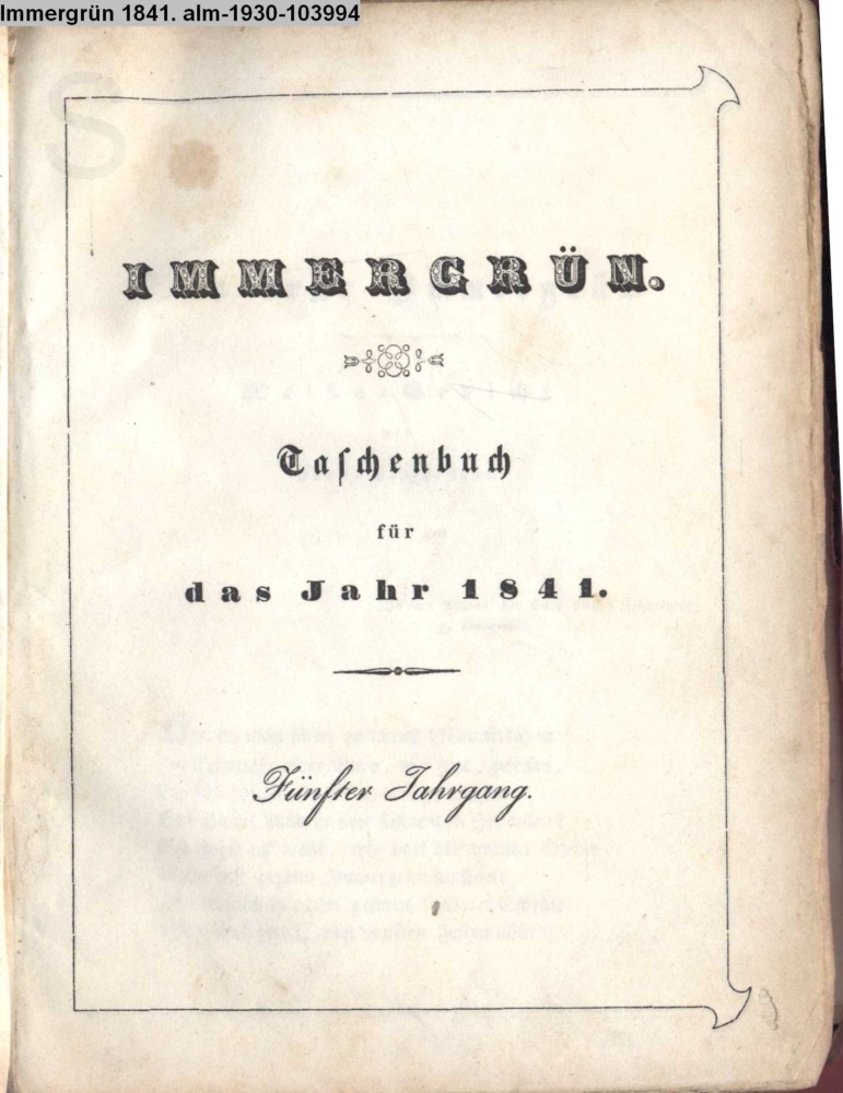 IMMERGRÜN / Taschenbuch / für / das Jahr 1841. / Fünfter Jahrgang