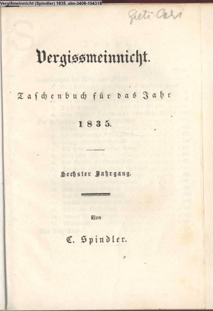 Vergissmeinnicht. / Taschenbuch für das Jahr / 1835. / Sechster Jahrgang. / Von / C. Spindler