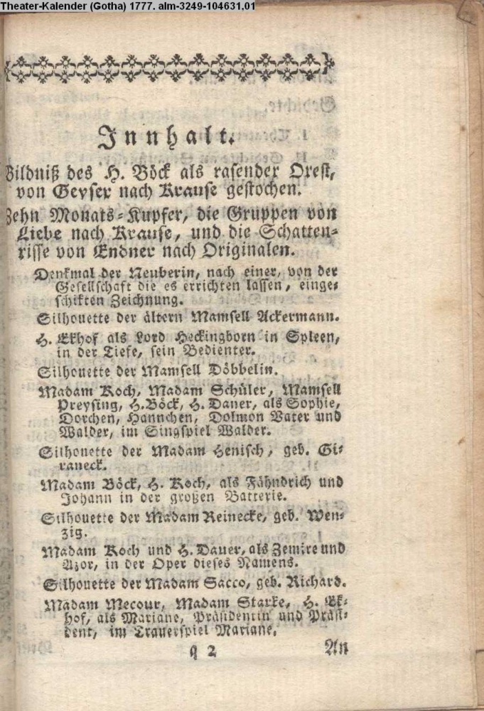 Theater-Kalender (Gotha) 1777, Nr. 104631