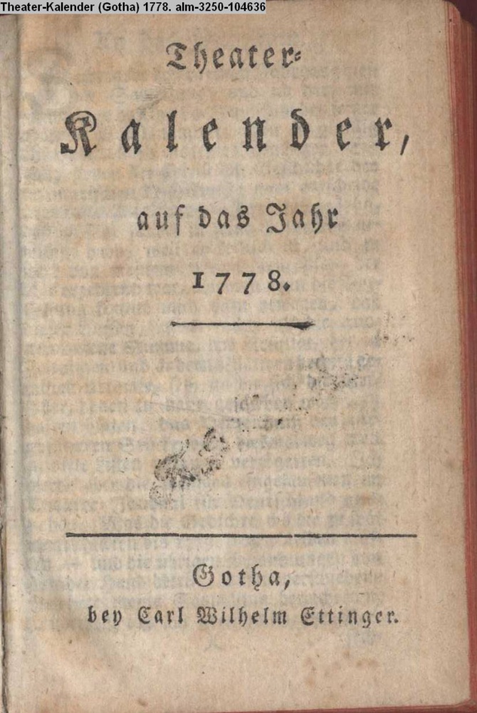 Theater- / Kalender / auf das Jahr / 1778. / Gotha, / bey Carl Wilhelm Ettinger