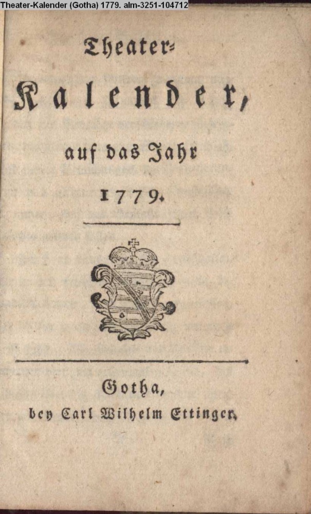 Theater- / Kalender / auf das Jahr / 1779. / Gotha, / bey Carl Wilhelm Ettinger