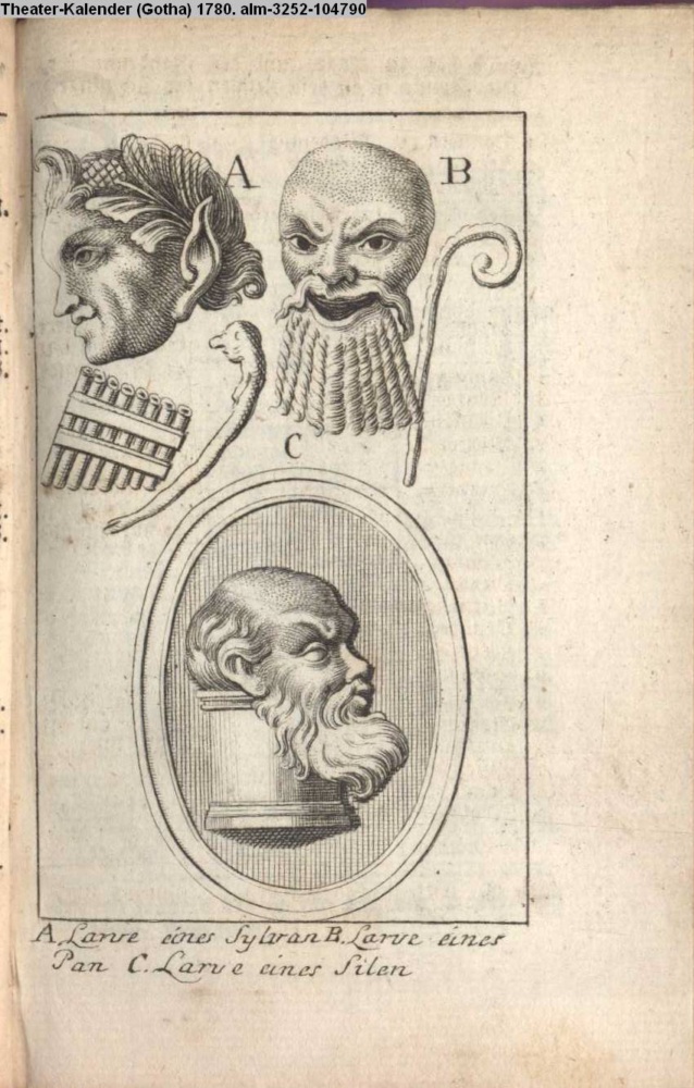 D. Sartyrn. einer stumm, der andre redend / E. Faun-Larven. F. tragische Larven