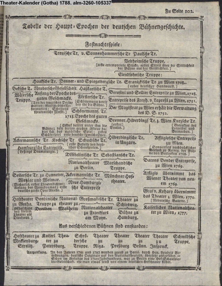 Tabelle der Haupt-Epochen der deutschen Bühnengeschichte