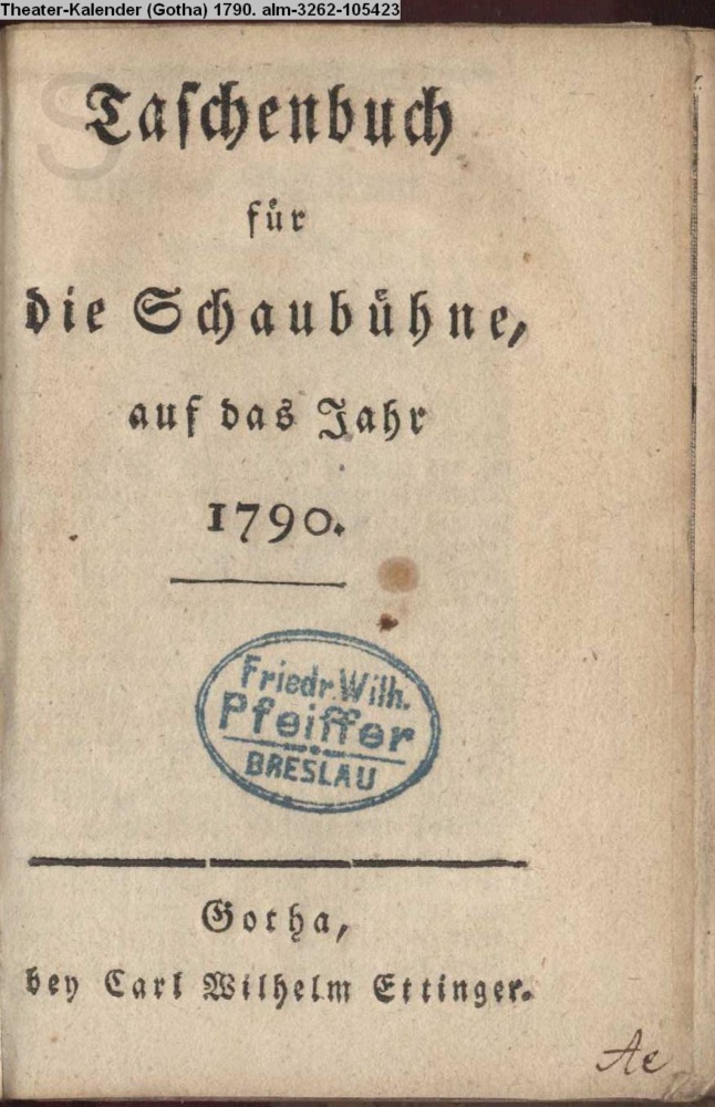 Taschenbuch / für / die Schaubühne, / auf das Jahr / 1790. / Gotha / bey Carl Wilhelm Ettinger