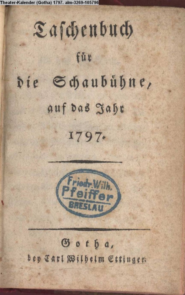 Taschenbuch / für / die Schaubühne, / auf das Jahr / 1797. / Gotha, / bey Carl Wilhelm Ettinger