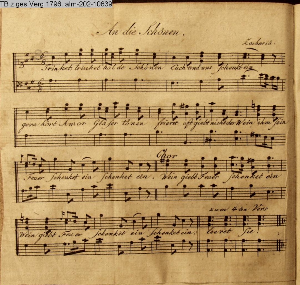 Vertonung des Gedichts »An die Schönen. Nach Paolo Rolli« von F. v. Köpken