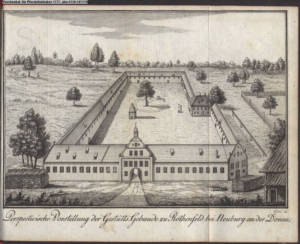 Pespectivische Vorstellung der Gestütts- Gebaeude zu Rothenfeld bei Neuburg an der Donau