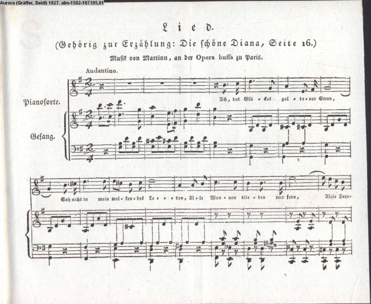 Lied. / Gehörig zur Erzählung: Die schöne Diana, Seite16. / Musik von Martinn, an der Opera buffa zu Paris