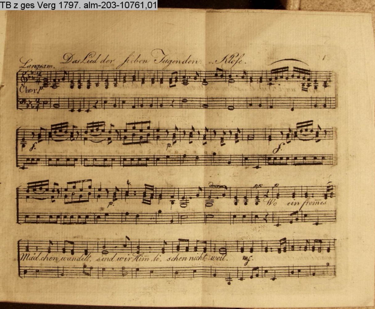 Vertonung der 1. Strophe des Gedichts »Das Lied der sieben Tugenden« von Kl. Schmidt