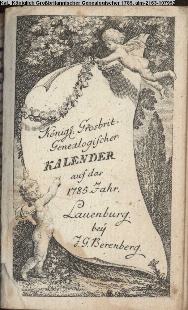 Königl. Grosbrit. / Genealogischer / KALENDER / auf das / 1785. Jahr / Lauenburg. / bey / J. G. Berenberg