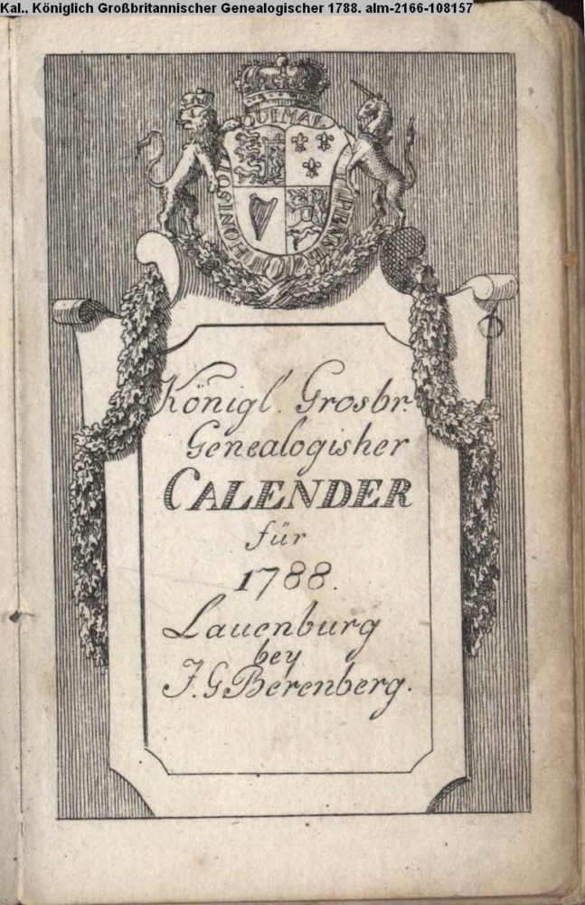 Königl. Grosbr. / Genealogischer / CALENDER / für / 1788. / Lauenburg / bey / J. G. Berenberg