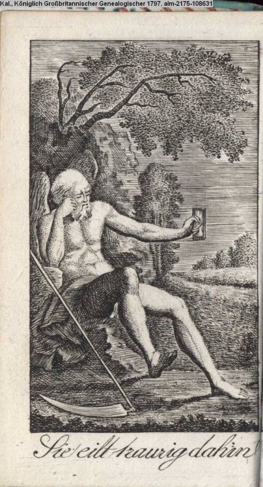 Königlich / Grosbritannischer / Historischer / Calender / für 1797 / mit Kupfern von / Schubert und Schule / und im Verlage der / Jaegerschen Buchhandlung / in Frankfurt am Main
