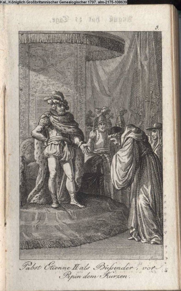 Pabst Etienne II. als Büssender, vor / Pipin dem Kurzen