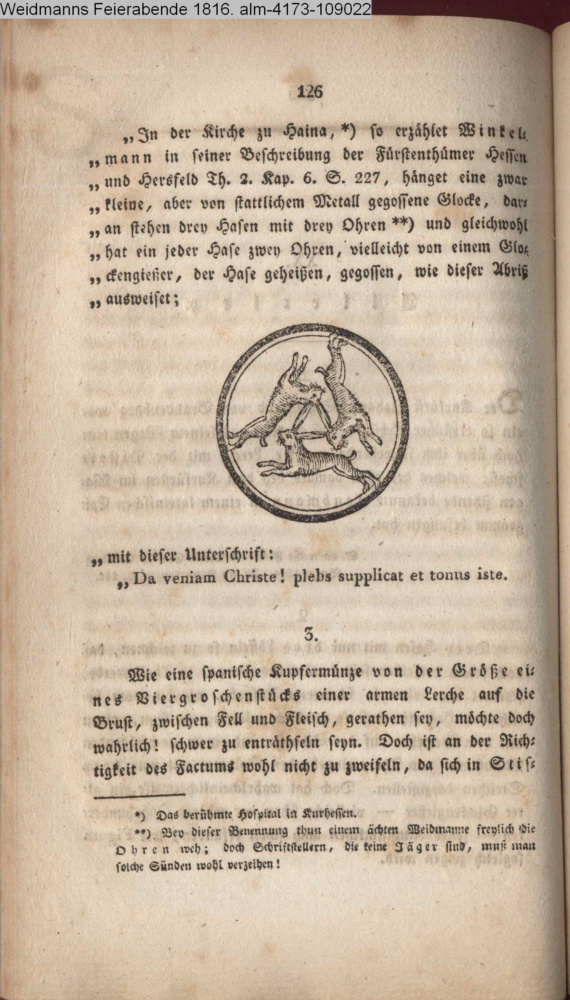 Illustration zu »Drey Hasen mit nur drey Löffeln so zu zeichnen, daß doch jedem derselben sein natürliches Paar zu Theil werde«