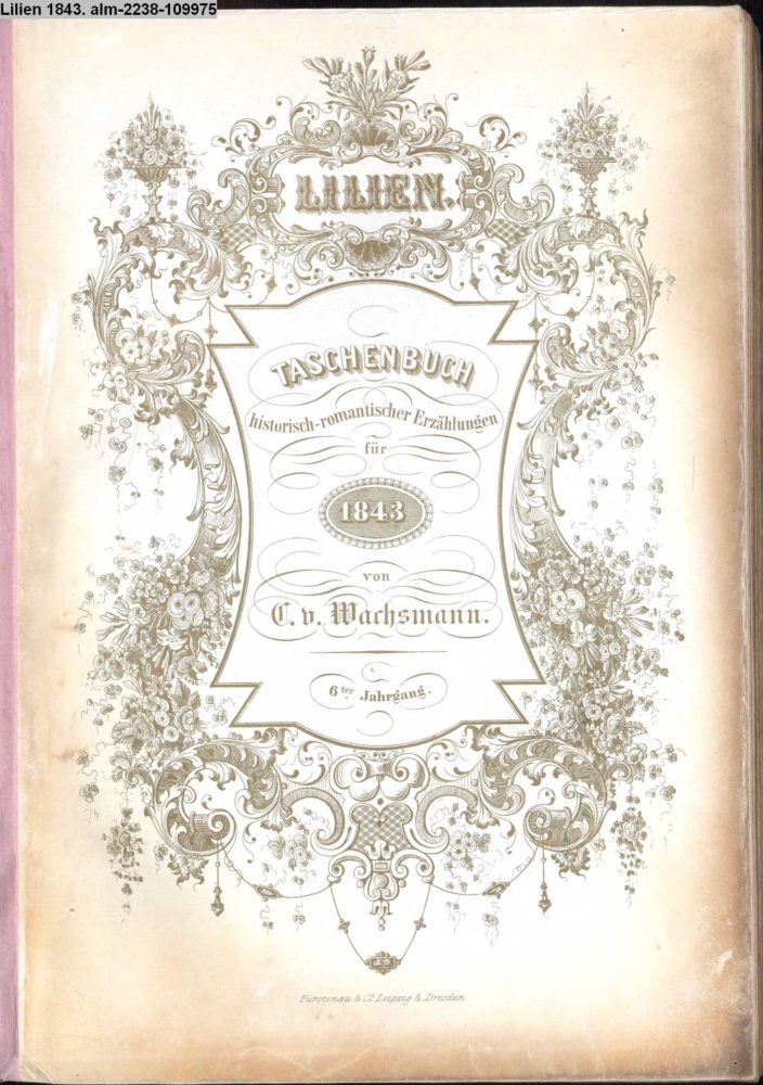 LILIEN. / TASCHENBUCH / historisch-romantischer Erzählungen / für / 1843 / von / C. v. Wachsmann. / 6ter. Jahrgang