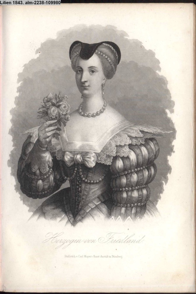 Lilien. / Taschenbuch / historisch-romantischer / Erzählungen / für 1843, / von / C. von Wachsmann. / Sechster Jahrgang. / Mit sechs Stahlstichen. / Leipzig. / Verlag von Carl Focke
