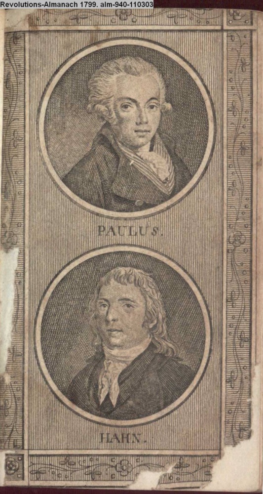 Umschlaggraphik r. variant wie in Jg 1798: Portraitmedaillons PAULUS / HAHN