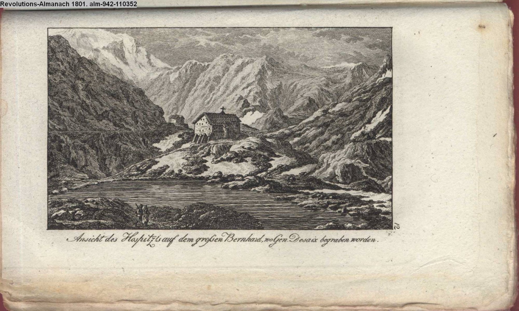 Ansicht des Hospitzis auf dem großen Bernhard, wo Gen. Desaix begraben worden.