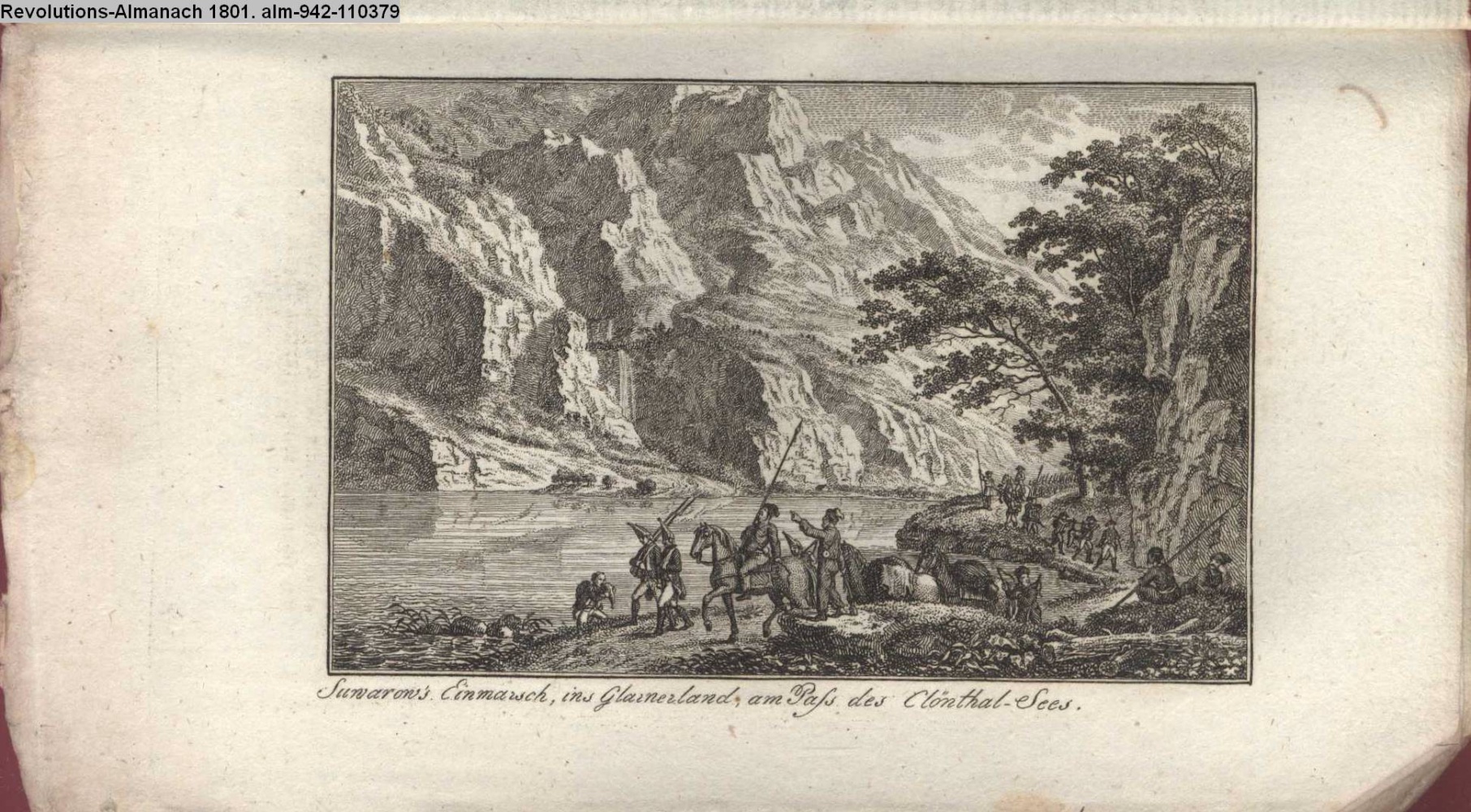Suwarow's Einmarsch in's Glarnerland am Pass des Clönthal Sees