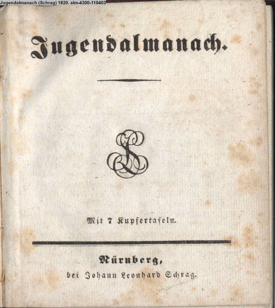 Jugendalmanach. / Mit 7 Kupfertafeln. / Nürnberg, / bei Johann Leonhard Schrag