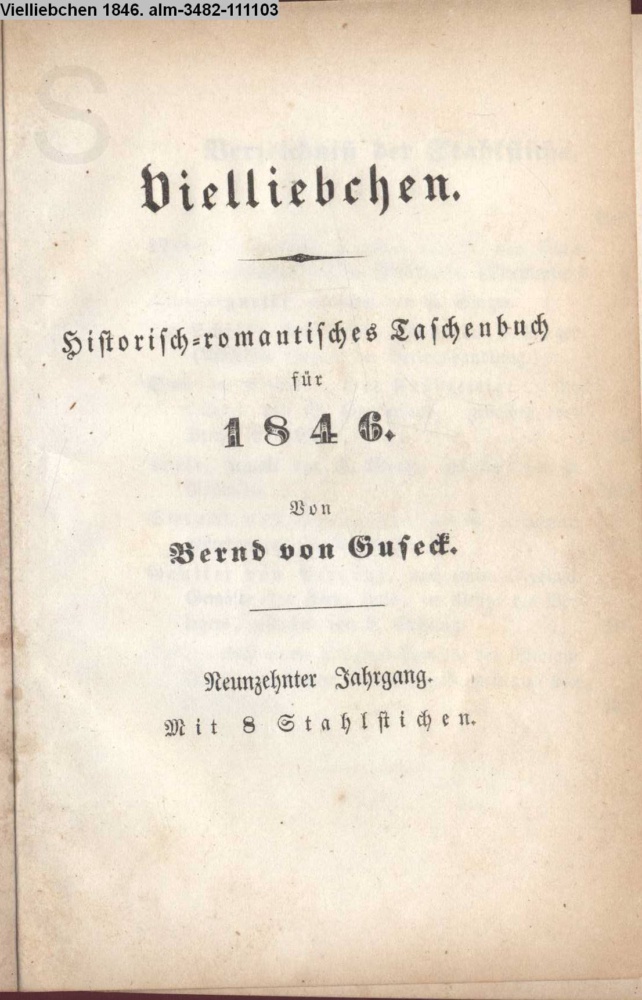 Vielliebchen. / Historisch-romantisches Taschenbuch / für / 1846. / Von / Bernd von Guseck. / Neunzehnter Jahrgang. / Mit 8 Stahlstichen