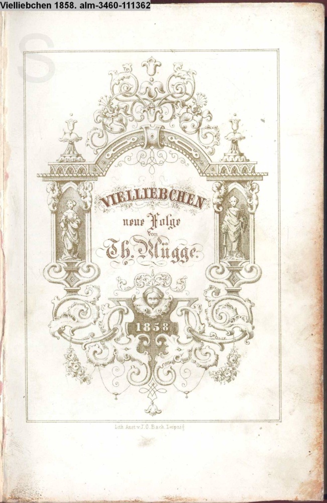 Vielliebchen. / Ein Taschenbuch für / 1858. / Neue Folge, neunter Jahrgang. / Von / Theodor Mügge. / Mit 7 Stahlstichen. / Leipzig, / Baumgärtner's Buchhandlung