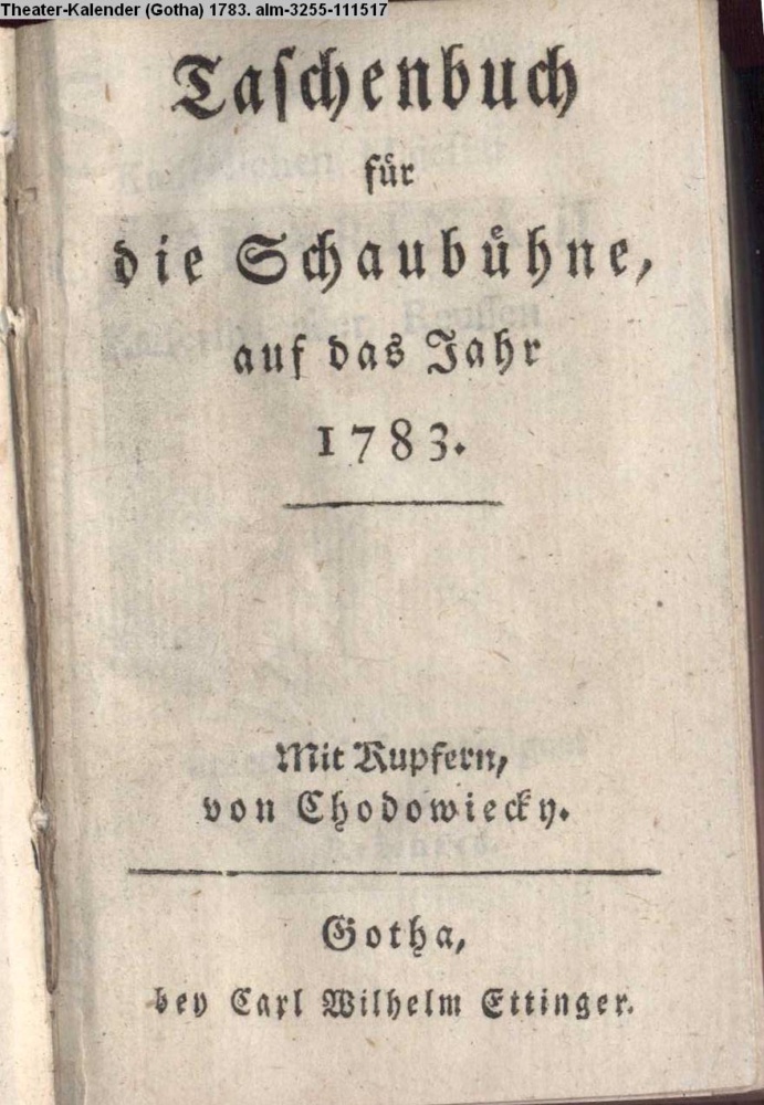 Taschenbuch / für / die Schaubühne, / auf das Jahr / 1783. / Mit Kupfern von Chodowiecky. / Gotha / bey Carl Wilhelm Ettinger