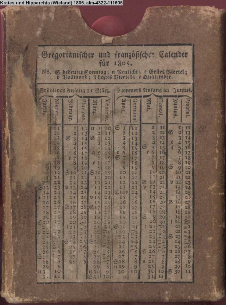 Gregorianischer und französischer Calender / für 1805