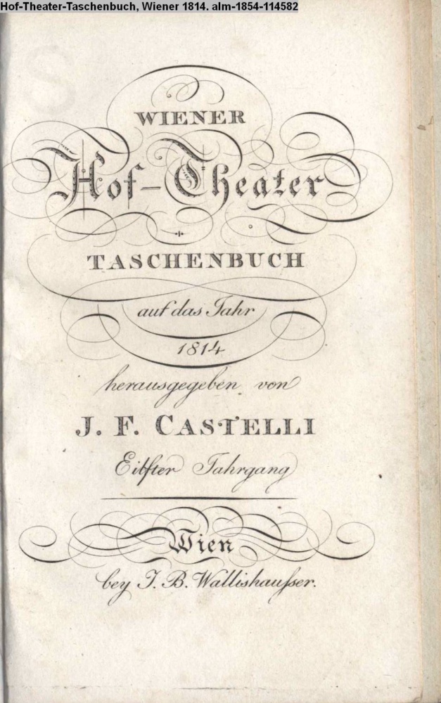 WIENER / Hof-Theater / TASCHENBUCH / auf das Jahr / 1814 / herausgegeben von / I. F. CASTELLI. Eilfter Jahrgang / Wien / bey J. B. Wallishausser