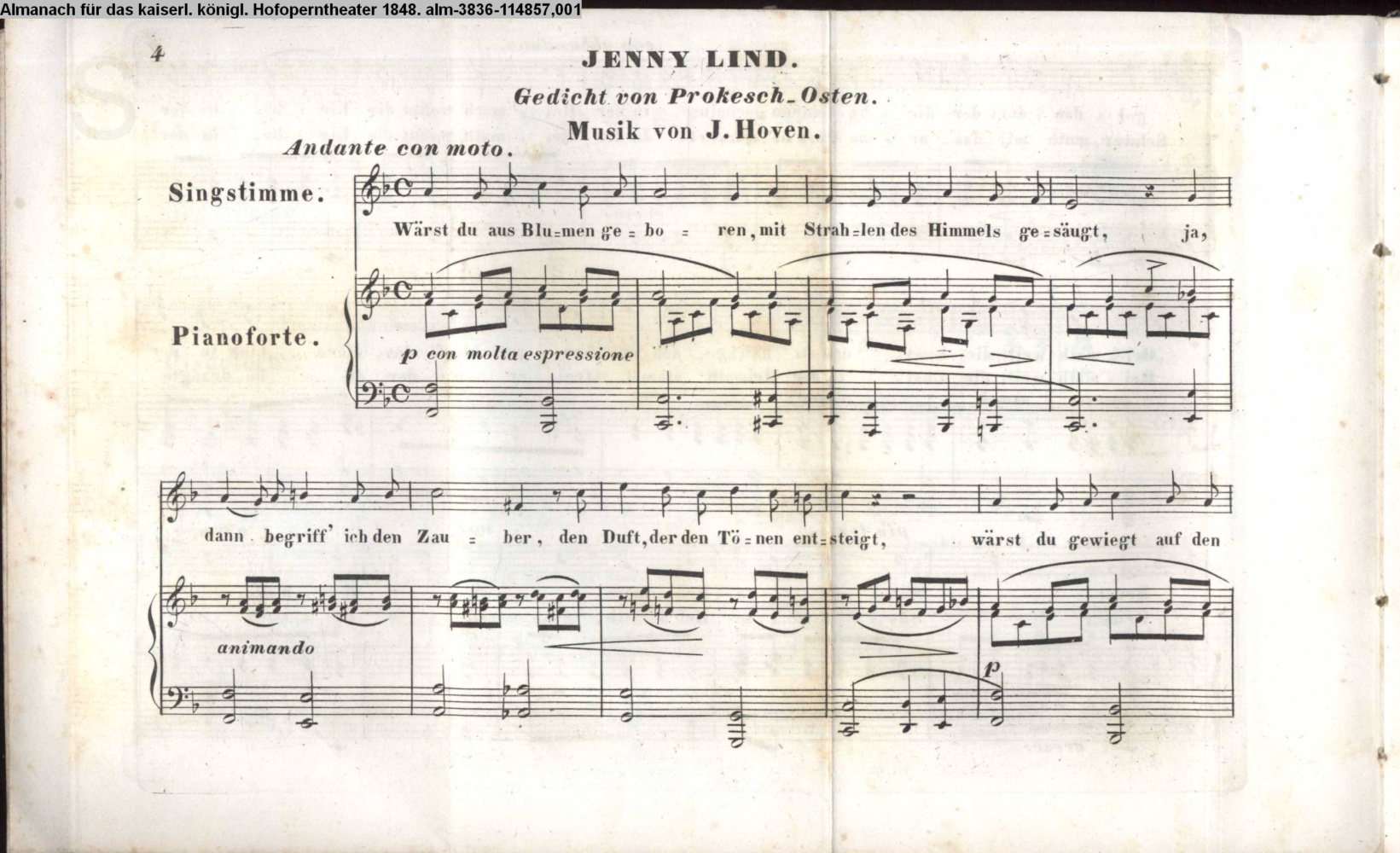 Vertonung des Gedichts »Jenny Lind« von A. von Prokesch-Osten