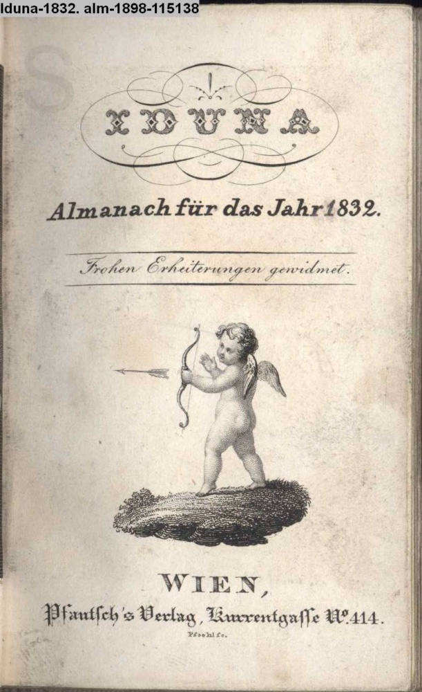 IDUNA . / Almanach für das Jahr 1832. / Frohen Erheiterungen gewidmet. / WIEN, / Pfautsch's Verlag, Kurrentgasse No. 414