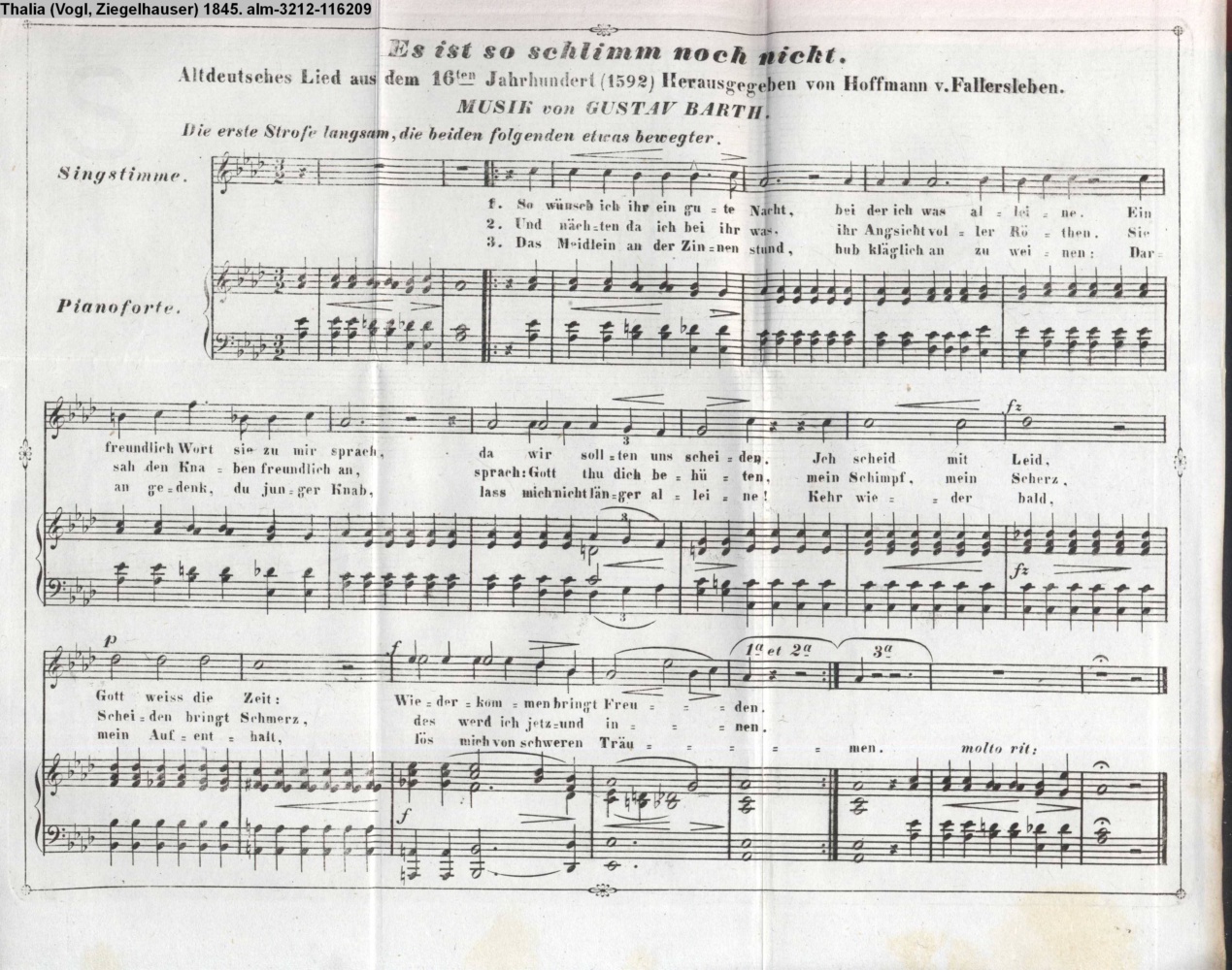 Es ist so schlimm noch nicht. / Altdeutsches Lied aus dem 16ten Jahrhundert (1592) Herausgegeben von Hoffmann v. Fallersleben