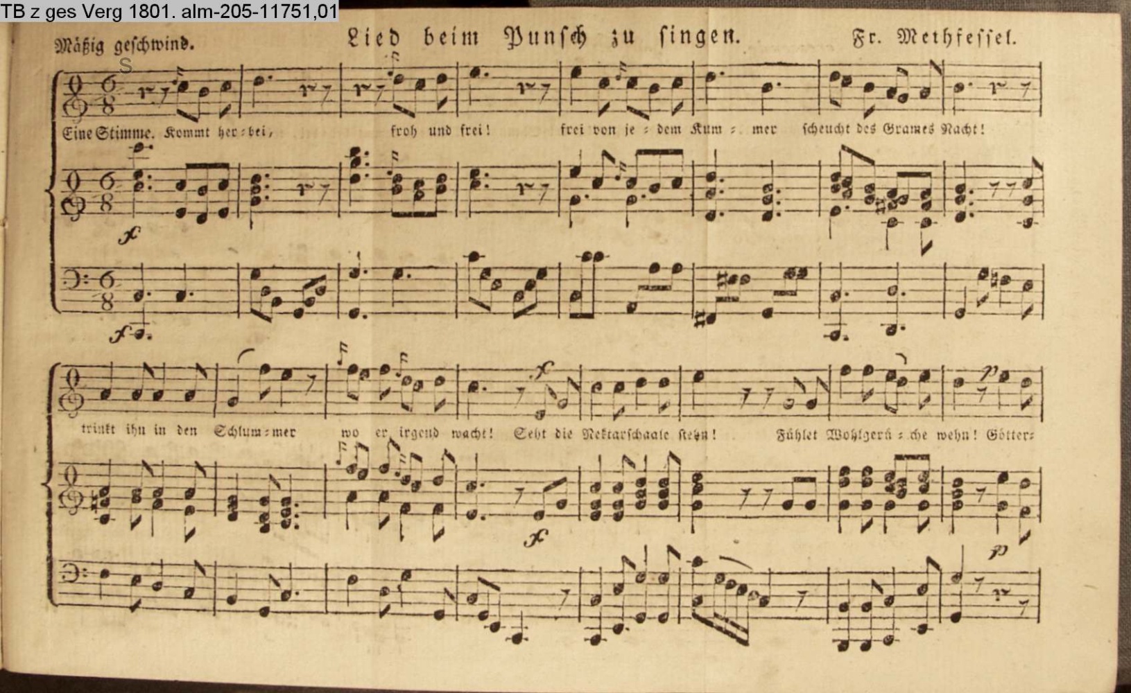 Vertonung des Gedichts »Lied beim Punsche zu singen« von J. F. Schink