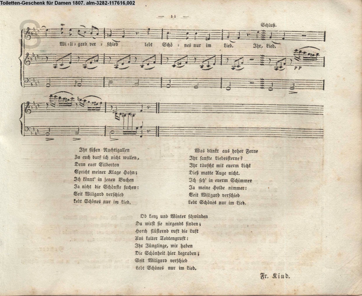 ) Vertonung des Gedichts »Lied« von Fr. Kind