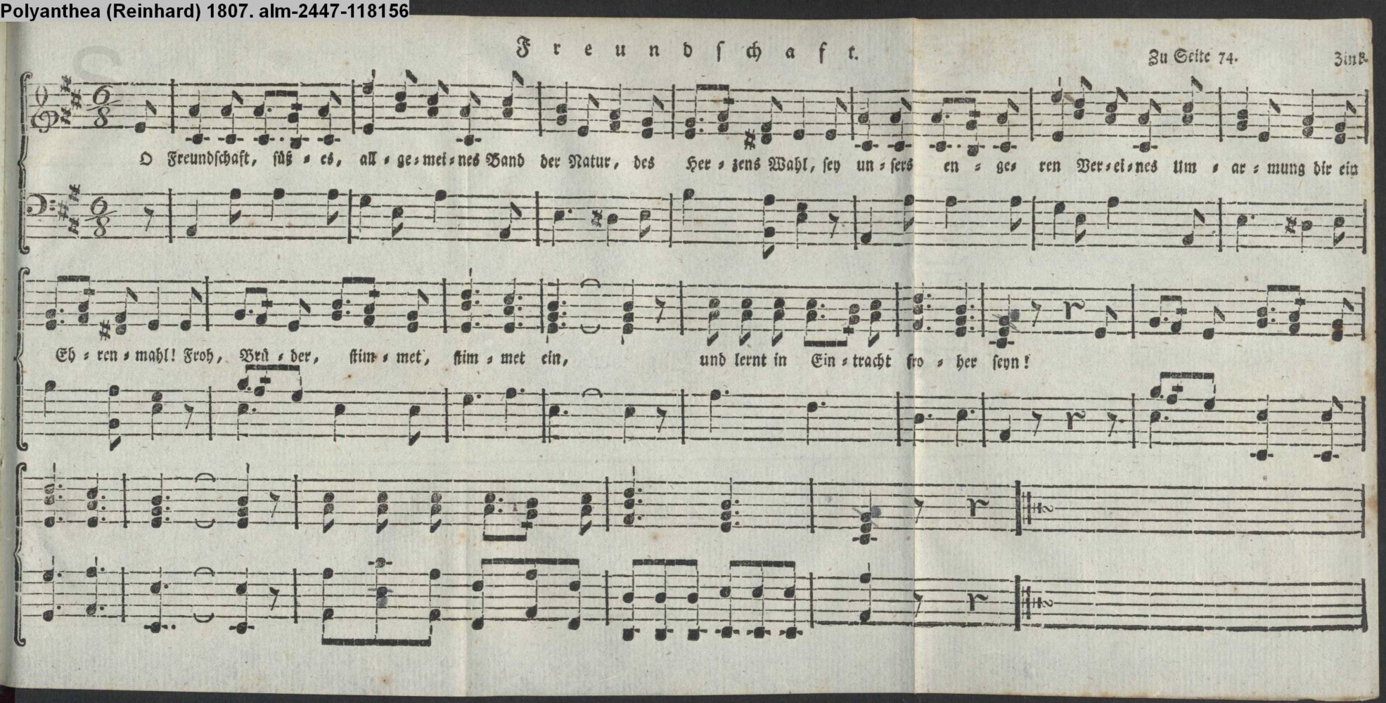 auszufaltende Vertonung des Gedichts »Freundschaft« von B.