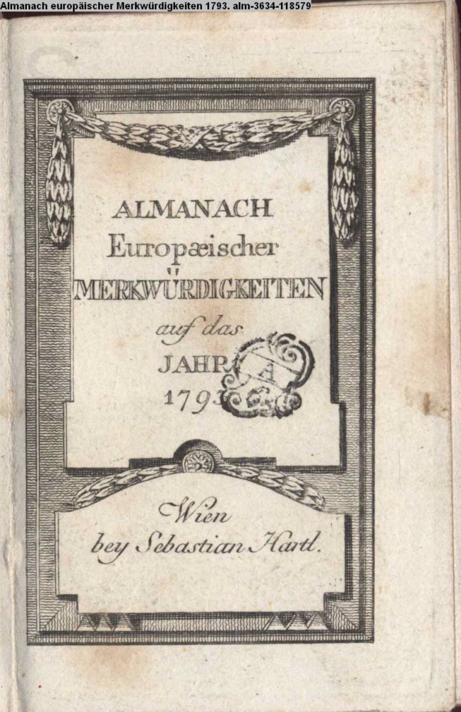 ALMANACH / Europaeischer / MERKWÜRDIGKEITEN / auf das / JAHR / 1793 / Wien / bey Sebastian Hartl