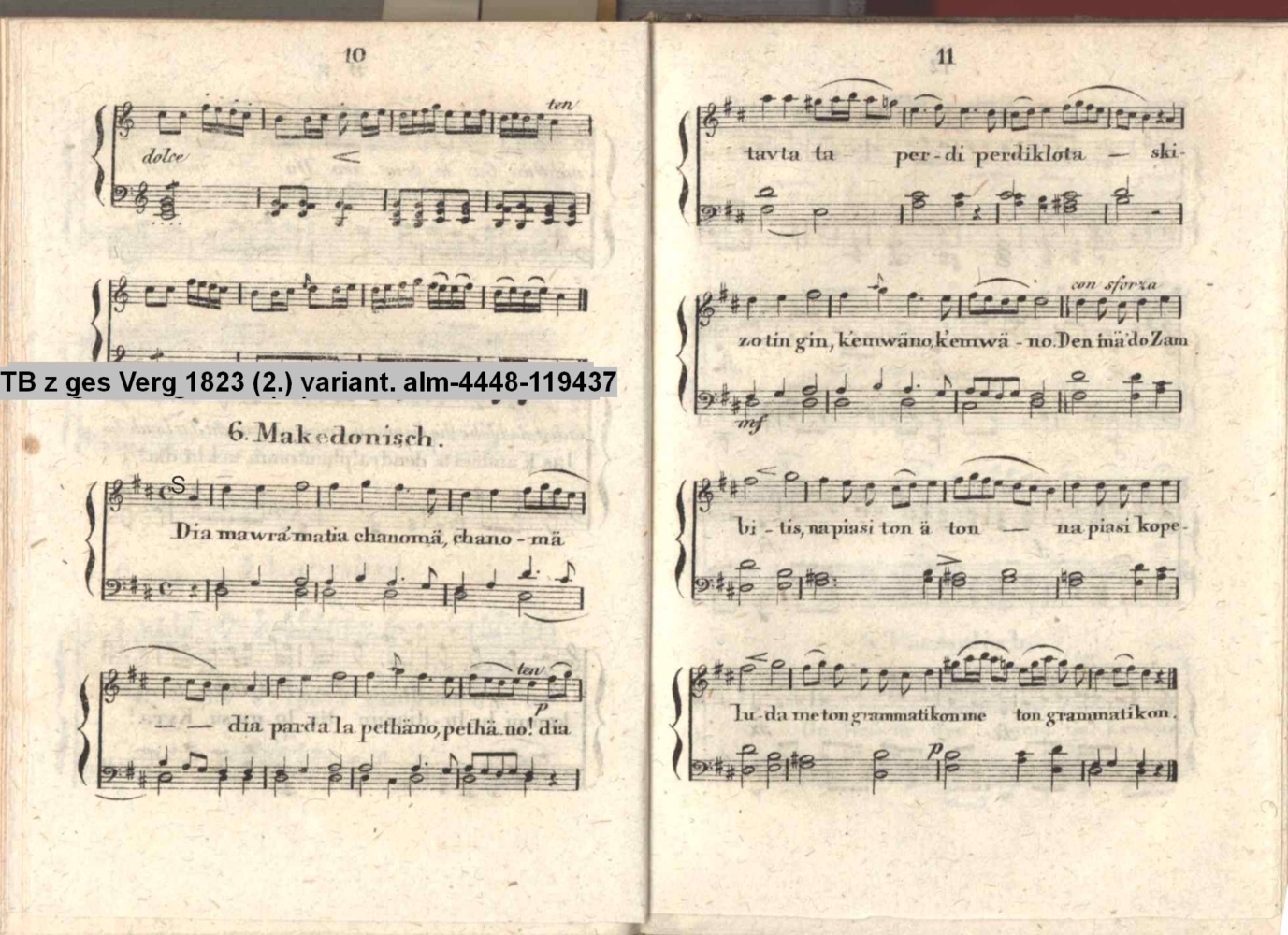 Musik-Beilage zu dem Taschenbuch zum geselligen Vergnügen 1823. Enthaltend Neugriechische Melodien Leipzig, bei Joh. Friedr. Gleditsch (Sammlung