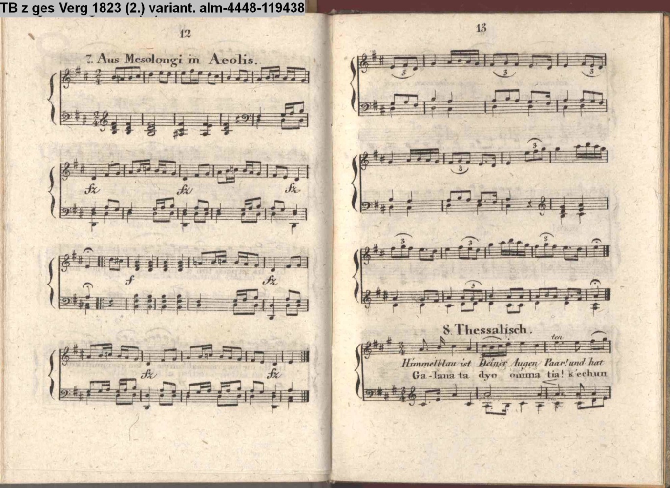 Musik-Beilage zu dem Taschenbuch zum geselligen Vergnügen 1823. Enthaltend Neugriechische Melodien Leipzig, bei Joh. Friedr. Gleditsch (Sammlung