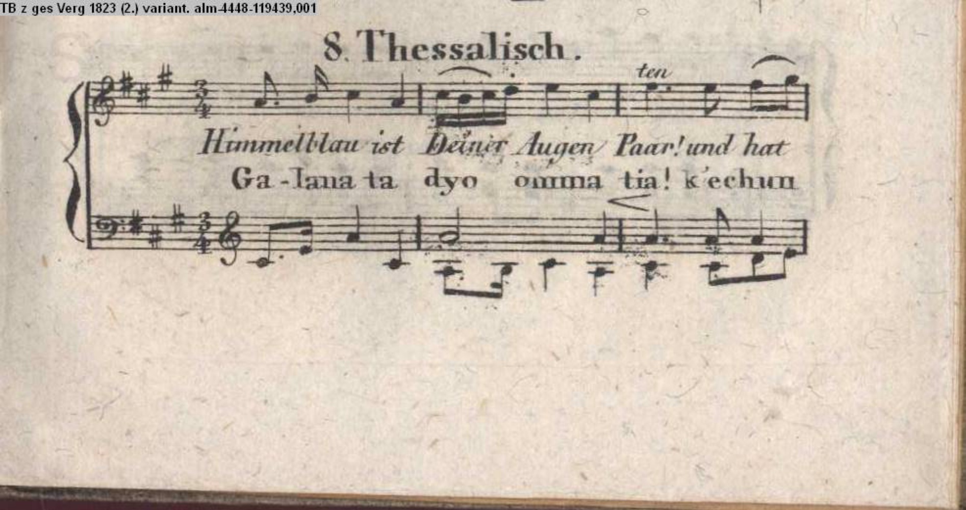 Musik-Beilage zu dem Taschenbuch zum geselligen Vergnügen 1823. Enthaltend Neugriechische Melodien Leipzig, bei Joh. Friedr. Gleditsch (Sammlung