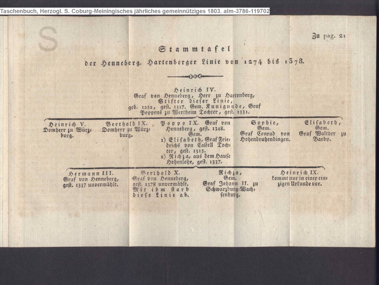 Stammtafel / der Henneberg. Hartenberger Linie von 1274–1378 / Zu pag. 21