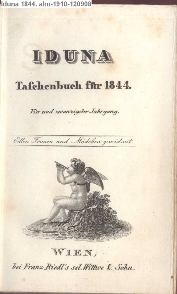 IDUNA. / Taschenbuch für das Jahr 1844. / Vier und zwanzigster Jahrgang. / Edlen Frauen und Mädchen gewidmet / WIEN, / bei Franz Riedl's sel. Wittwe & Sohn